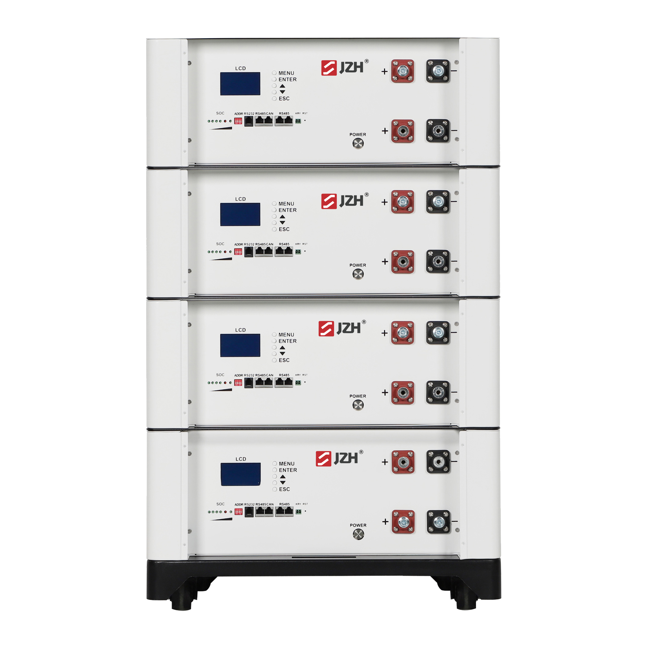 バッテリーパックには、動作設定の視覚化のためにLCDディスプレイ画面が装備されています。 JZHエネルギー貯蔵リチウムバッテリーパックは、ほとんどのブランドインバーターと互換性があり、自動的に良好な通信を備えています。